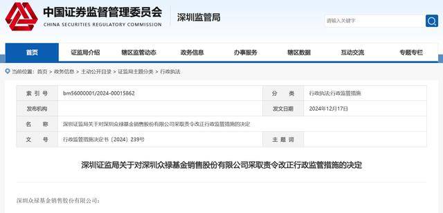 同日,深圳证监局发布公告,表示薛峰作为众禄基金董事长、总经理,对上述行为负有责任。依据《销售办法》第五十三条规定,决定对薛峰采取监管谈话的行政监管措施。