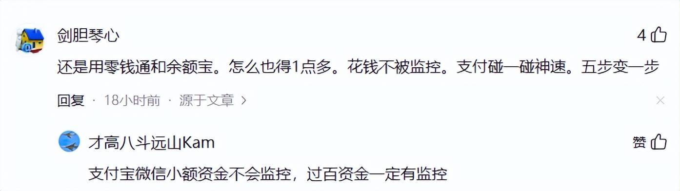 还是用零钱通和余额宝。怎么也得1点多。花钱不被监控。支付碰一碰神速。五步变一步