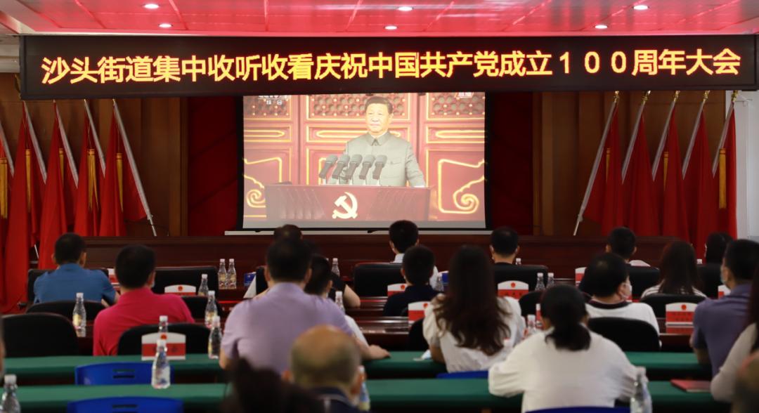 7月1日上午8时,沙头街道组织机关全体干部职工共同收看“庆祝中国成立100周年大会”。认真聆听中央、国家主席、主席习的重要讲话,现场反响热烈。大家表示,将深入学习贯彻习“七一”重要讲话精神,锐意进取,真抓实干,把党史学习教育与为民办实事紧密结合,努力在福田加快建设“社会主义现代化典范城区”的进程中谱写“沙头新篇”。与此同步,沙头街道还在辖区12个社区、退役军人服务站、新大洲健康驿站、如家健康驿站设立分会场,组织收看直播。