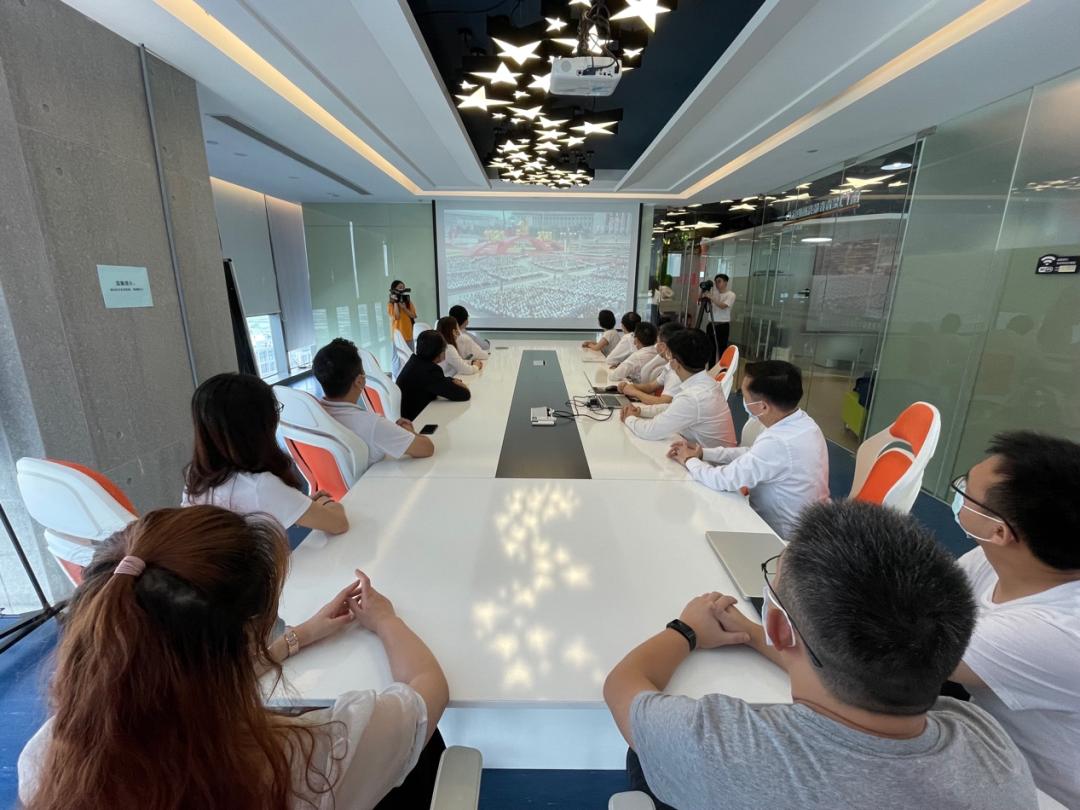 7月1日上午,在福田团区委的组织下,河套深港科技创新合作区的粤港澳创业青年代表集中收听收看了庆祝中国成立100周年大会直播。