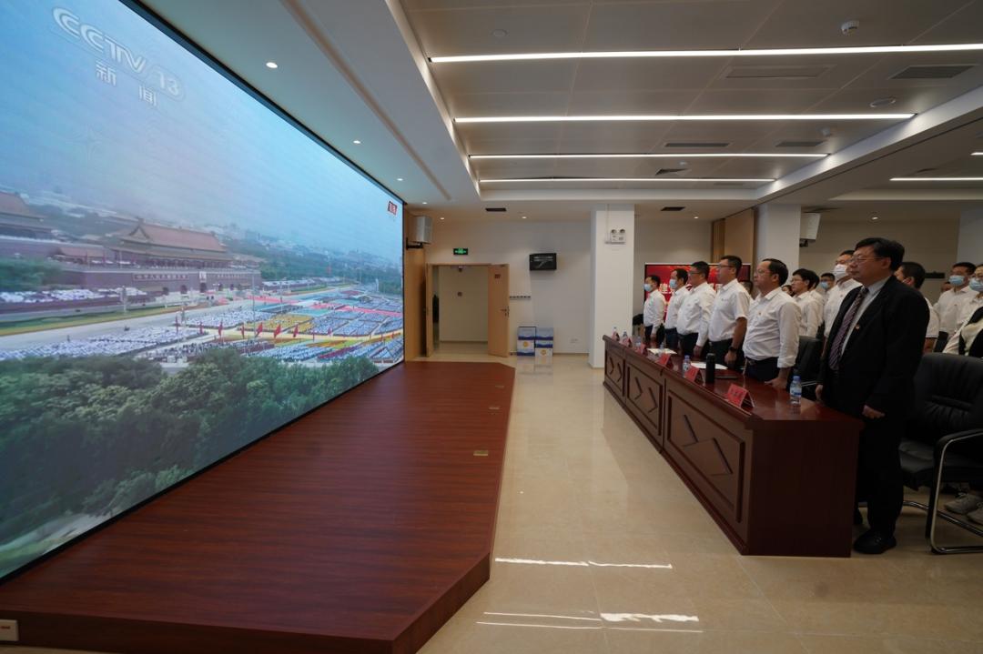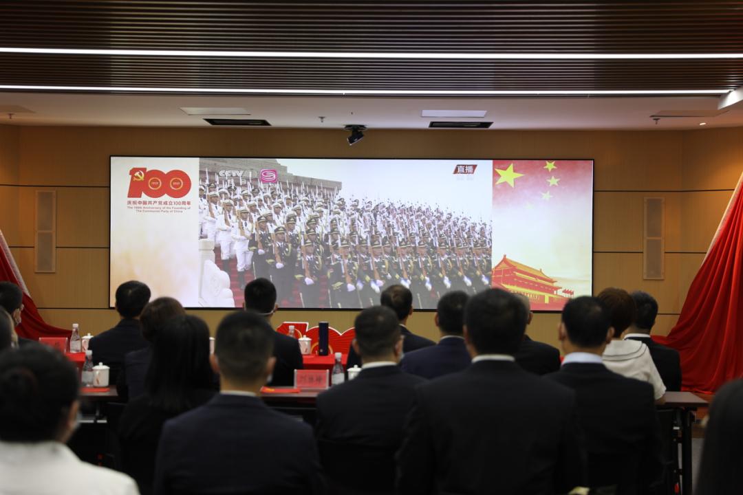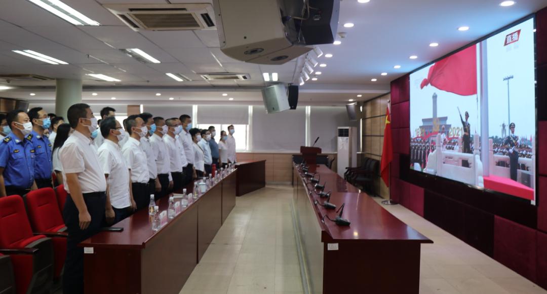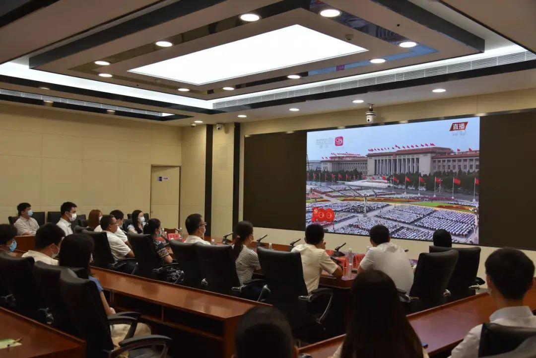 7月1日上午8时,在区智慧城市指挥中心会议室,区委区政府办公室全办工作人员集中收听收看庆祝中国成立100周年大会现场直播,认真学习贯彻习重要讲话精神。