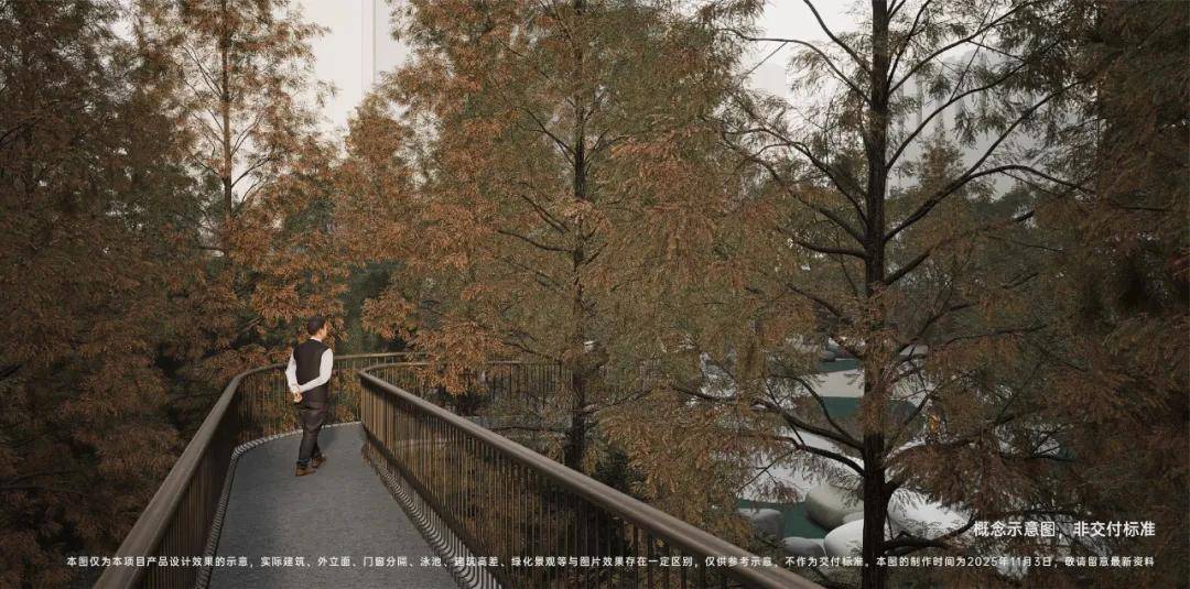 充足的地面体量,让绿城有底气跳出 “向下拓展” 的常规思路,转而将景观资源向空中延伸,打造“一层+二层+局部下沉” 的三重立体游园体系