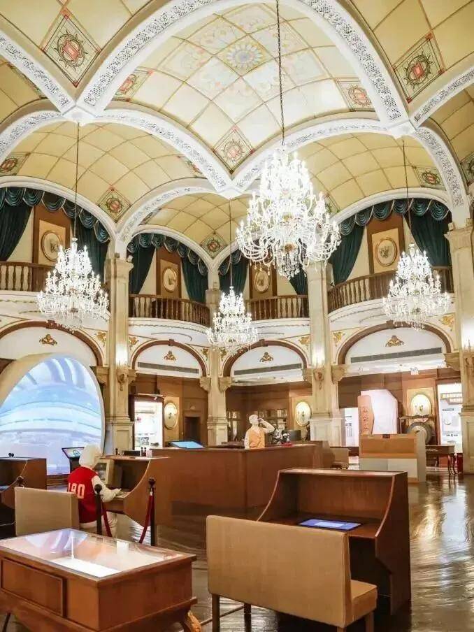 孔雀厅 “三心拱” 的稳定构图与承重优势,将其融入建筑基座设计,米白色石材勾勒的拱券线条,既保留历史建筑的厚重质感,又避免复古的繁复压抑更截取外滩经典外廊式建筑形态
