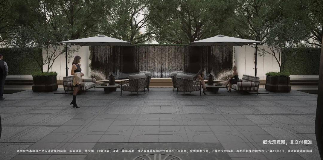 社区内部的立体花园,与北外滩中央绿地形成 “城市绿脉+社区绿芯” 的呼应,实现 “出则融入城市繁华,入则沉浸自然静谧” 的切换