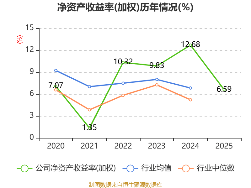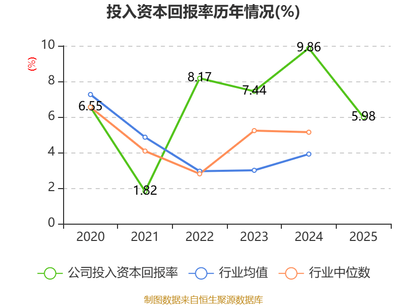 数据显示,2025年公司加权平均净资产收益率为6.59%,较上年同期下降6.09个百分点。公司2025年投入资本回报率为5.98%,较上年同期下降3.88个百分点。
