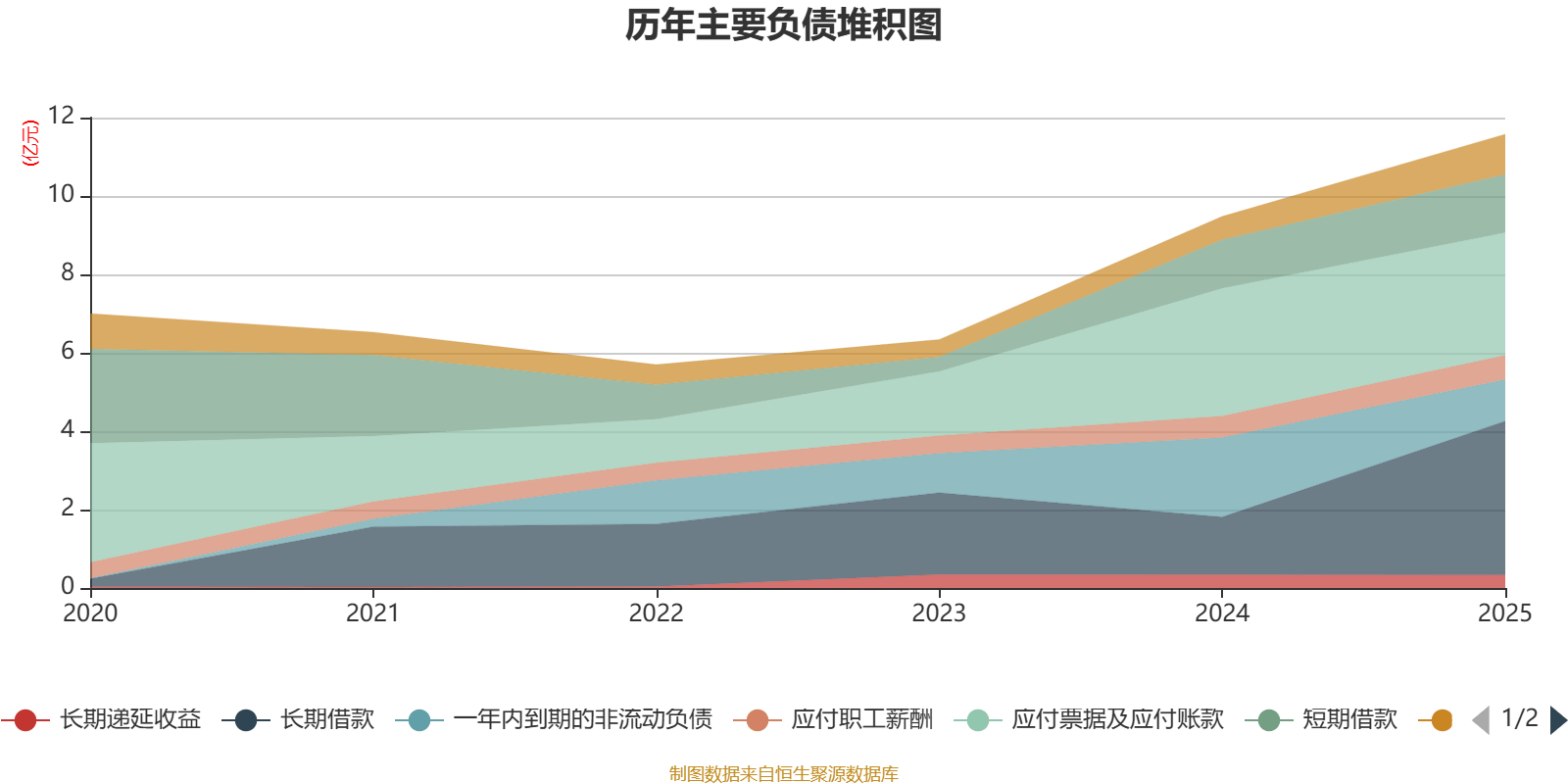 负债重大变化方面,截至2025年末,公司长期借款较上年末增加166.9%,占公司总资产比重上升11.55个百分点;一年内到期的非流动负债较上年末减少47.61%,占公司总资产比重下降5.45个百分点;应付票据及应付账款较上年末减少4.14%,占公司总资产比重下降1.8个百分点;短期借款较上年末增加19.57%,占公司总资产比重上升0.76个百分点。