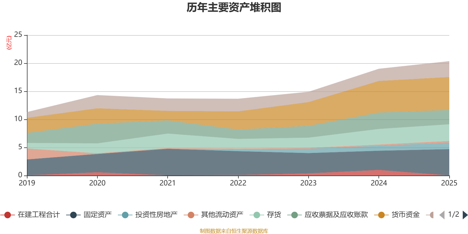 截至2025年,公司经营活动现金流净额为1.84亿元,同比增长24.28%;筹资活动现金流净额-2277.51万元,同比减少8962.45万元;投资活动现金流净额-1.34亿元,上年同期为-1.17亿元。